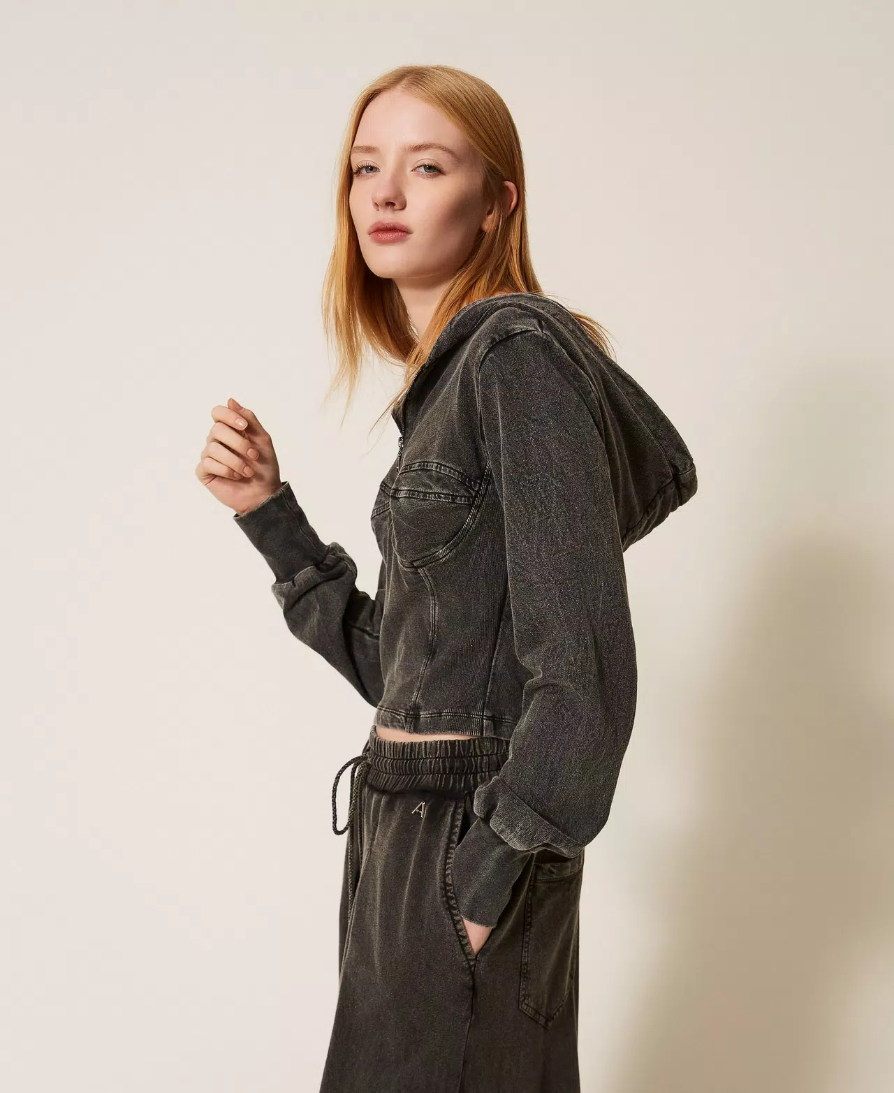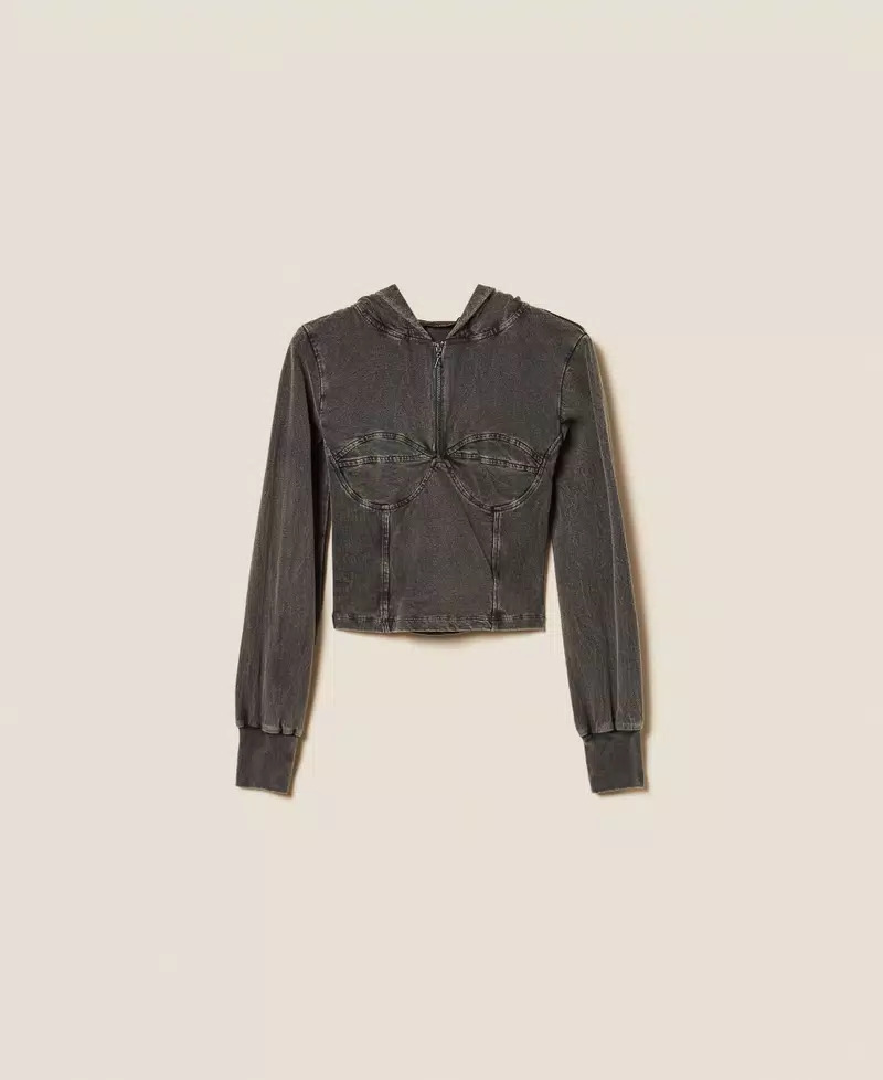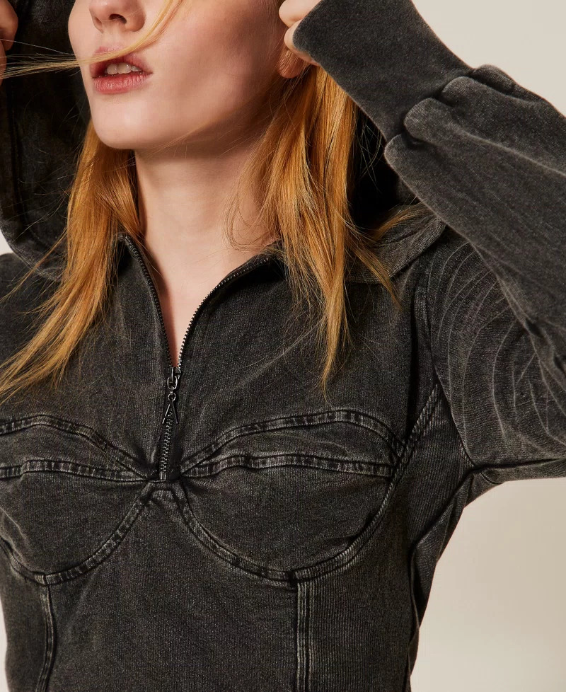 Sudadera de algodón teñido y deslavado. Tiene una construcción de efecto bustier con cortes y costuras, cuello con capucha, manga larga con puños y corte ceñido. Composición: 100 % algodón.