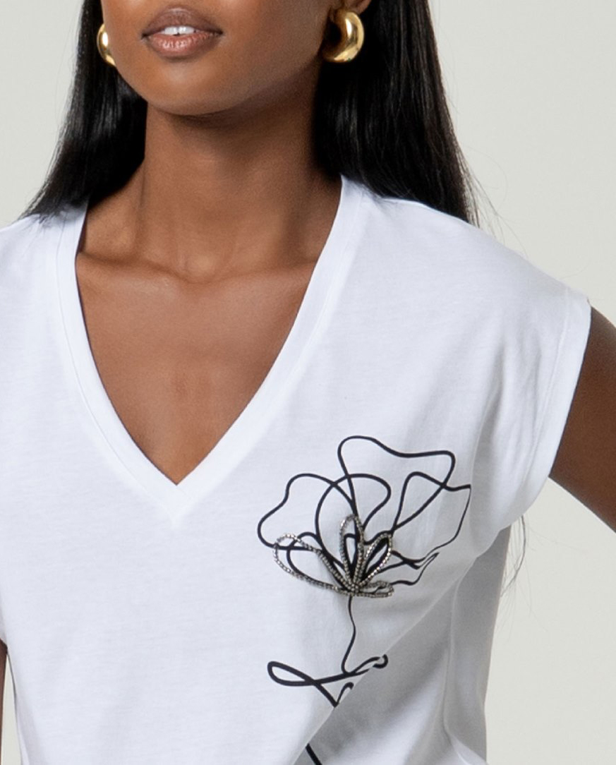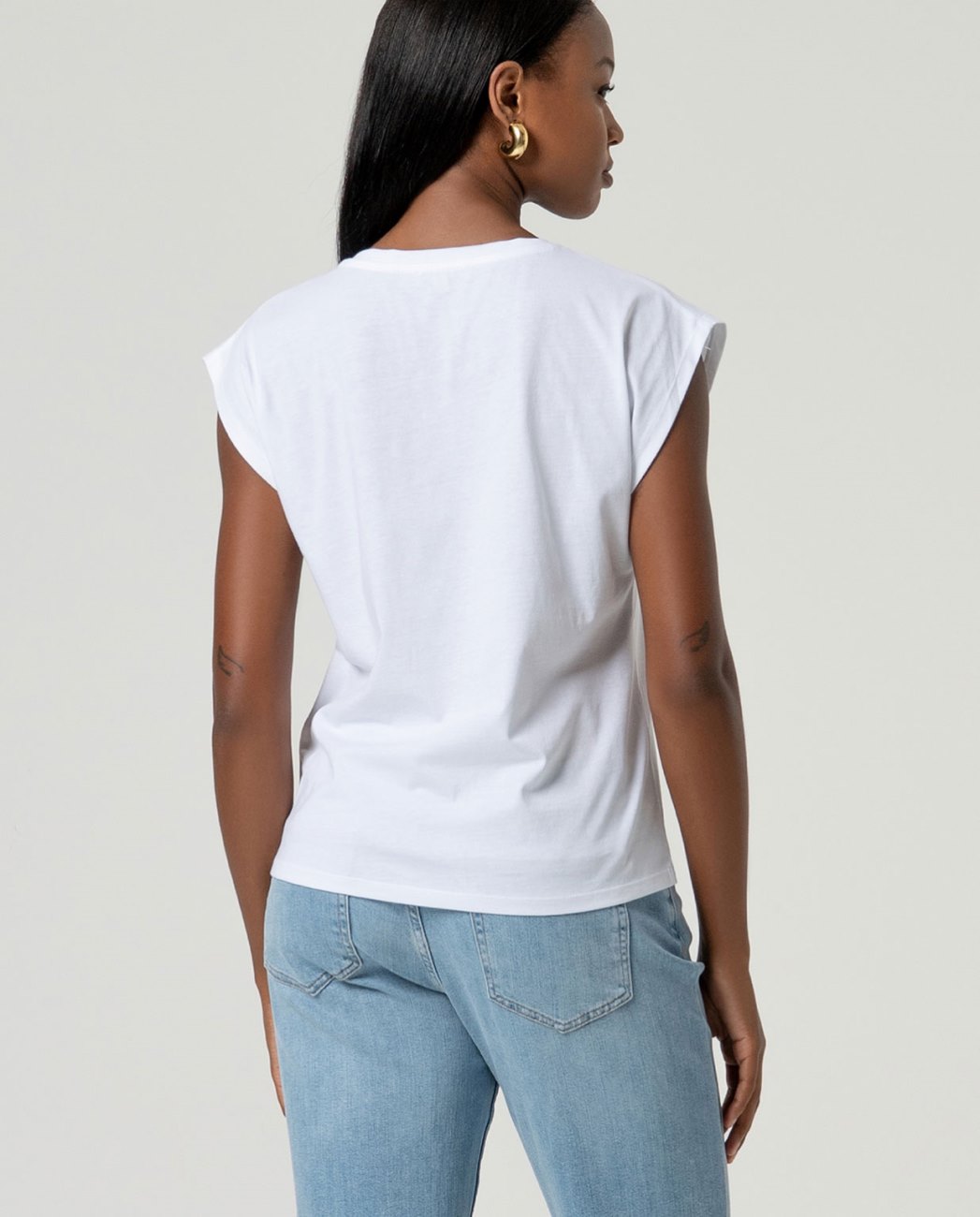 Camiseta sin mangas con escote pico, hombro amplio y corte recto. Diseño con estampación en la parte frontal. Confeccionada en 100% algodón.